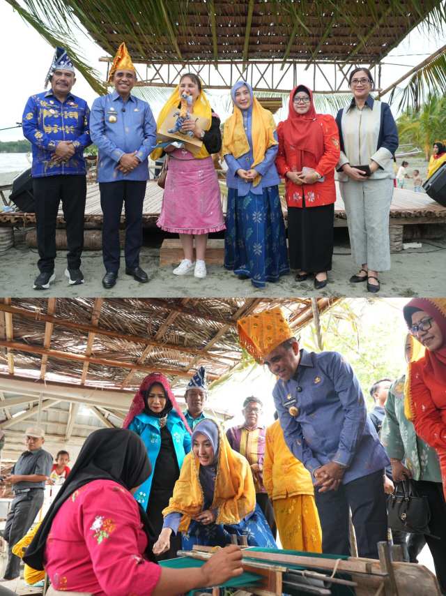 Gubernur Sulawesi Tengah, Dr. H. Anwar Hafid, M.Si., bersama Ketua Dekranasda Provinsi Sulteng, Sry Nirwanti Bahasoan, menghadiri sekaligus membuka Networking of Tenun Central Sulawesi yang digelar di Desa Wisata Towale, Kecamatan Banawa Tengah, Kabupaten Donggala. Kegiatan tersebut juga dirangkaikan dengan peresmian objek wisata baru Pantai Karampuana sebagai destinasi pendukung desa wisata, Selasa (9/12/2025).