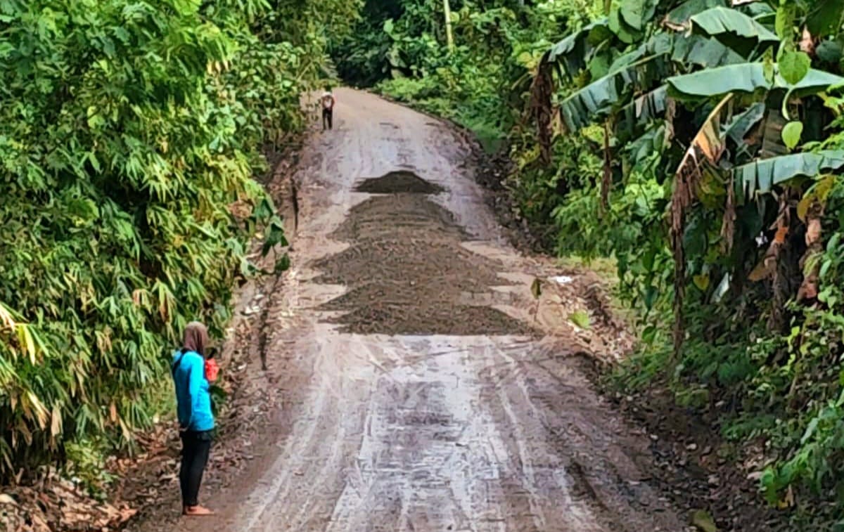 Pantauan di lokasi memperlihatkan badan jalan masih berupa tanah bercampur material timbunan yang belum terpadatkan optimal. Saat hujan turun, ruas jalan berubah licin dan berlumpur, sehingga menyulitkan kendaraan melintas.