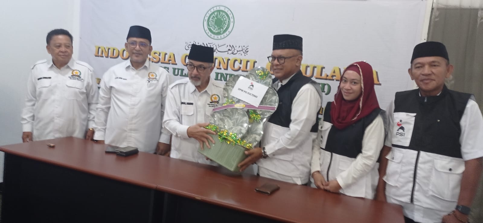 Silaturahmi antara Ketua PSI dengan Ketua FKUB Prof ĶH Zainal Abidin dan Sekjen Dr Munif Godal yang berlangsung di Sekretariat MUI Kota Palu, Rabu 16 Maret 2026 dihadiri Pendeta Herson Wakil Ketua FKUB perwakilan Pante Kosta, Agus Tinus Motoh perwakilan Katholik, Lukito Handoyo perwakilan agama Budha serta Wakil OKK PSI Sulteng Verawaty Pangkey.