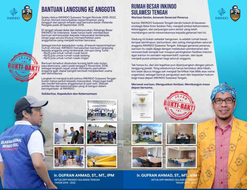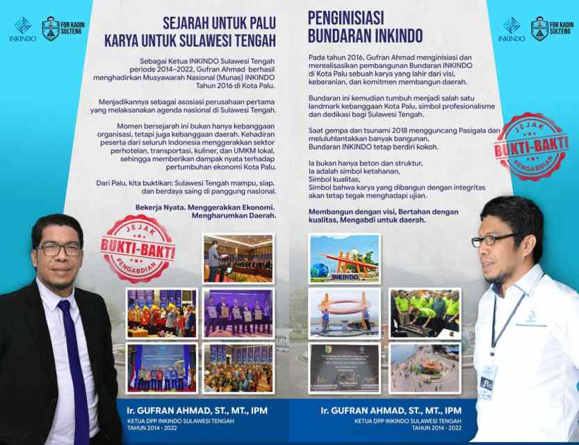 Selama menjabat sebagai Ketua DPP INKINDO Sulawesi Tengah periode 2014–2022, Gufran Ahmad tidak hanya berperan sebagai organisatoris, tetapi juga motor penggerak pembangunan dan ekonomi daerah.