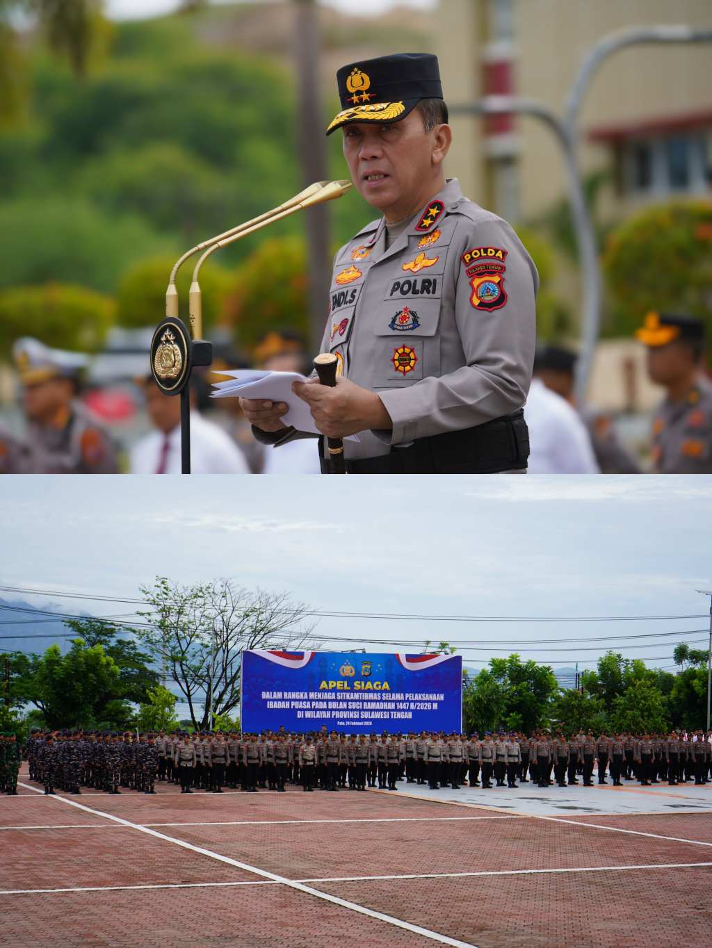 Kepala Kepolisian Daerah (Kapolda) Sulawesi Tengah (Sulteng) Irjen Pol Dr Endi Sutendi pimpin Apel Siaga dalam rangka menjaga keamanan dan ketertiban masyarakat (Kamtibmas) selama pelaksanaan ibadah puasa Ramadhan 1447 H/2026 M, Selasa 24/02/2026 pagi, di Mako Polda Sulawesi Tengah.