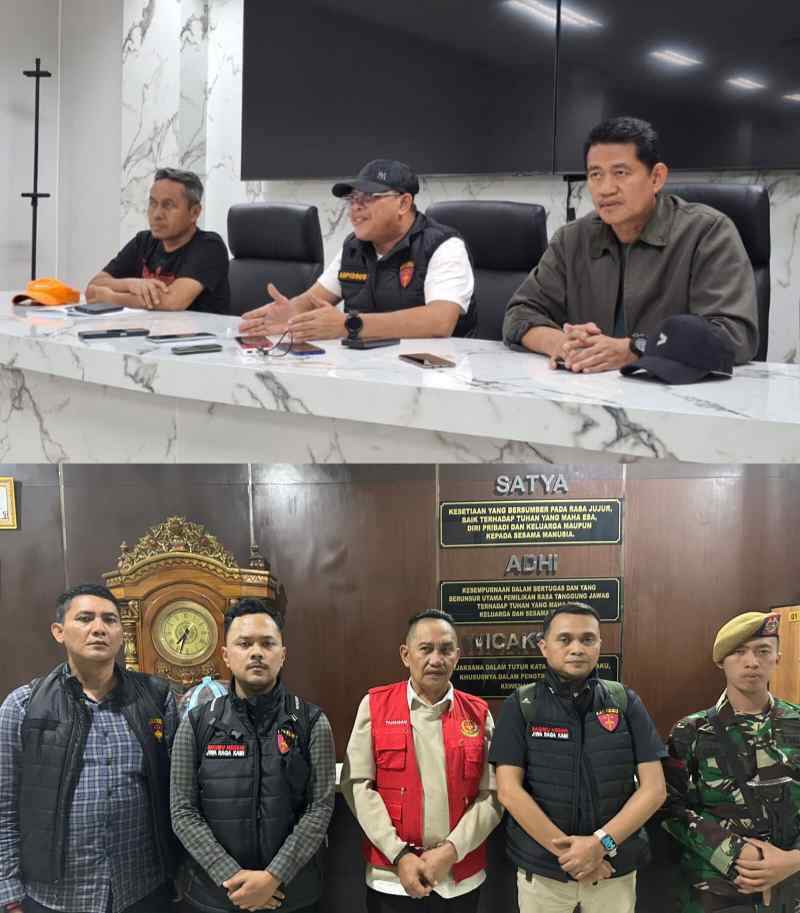 Konferensi pers dipimpin Aspidsus Kejati Sulteng, Salahuddin, didampingi Asintel dan Kasipenkum.