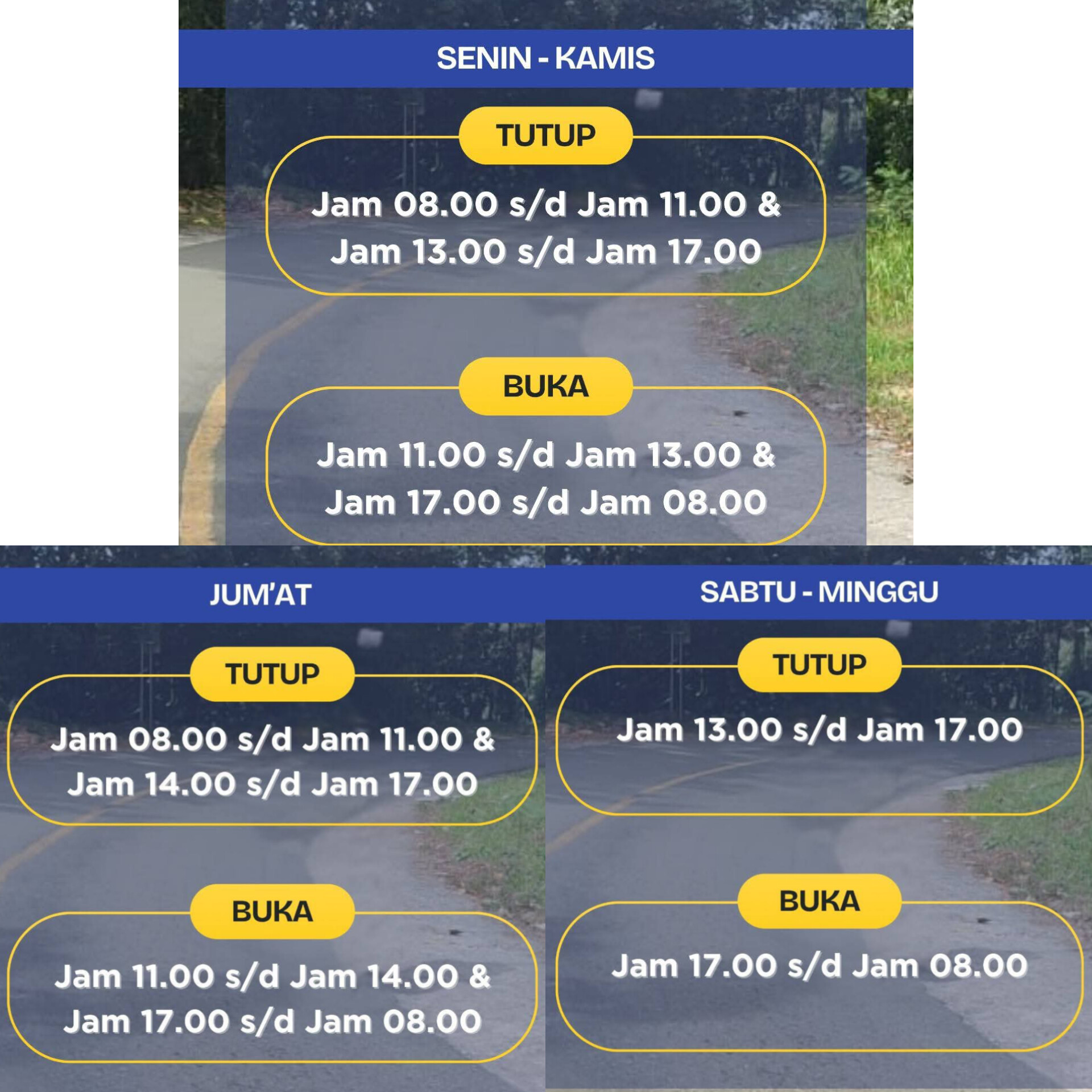 Untuk menjamin keselamatan pengguna jalan serta mendukung kelancaran pekerjaan di lapangan, pemberlakuan buka tutup jalan dijadwalkan mulai 02 Februari hingga 10 Maret 2026.