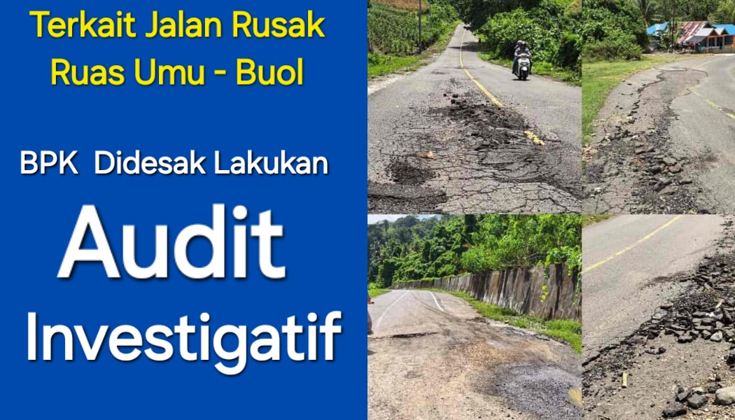 Ia meminta aparat penegak hukum (APH), BPK RI, serta melibatkan ahli konstruksi independen untuk segera turun melakukan audit investigatif terhadap proyek Jalan Nasional Buol.
