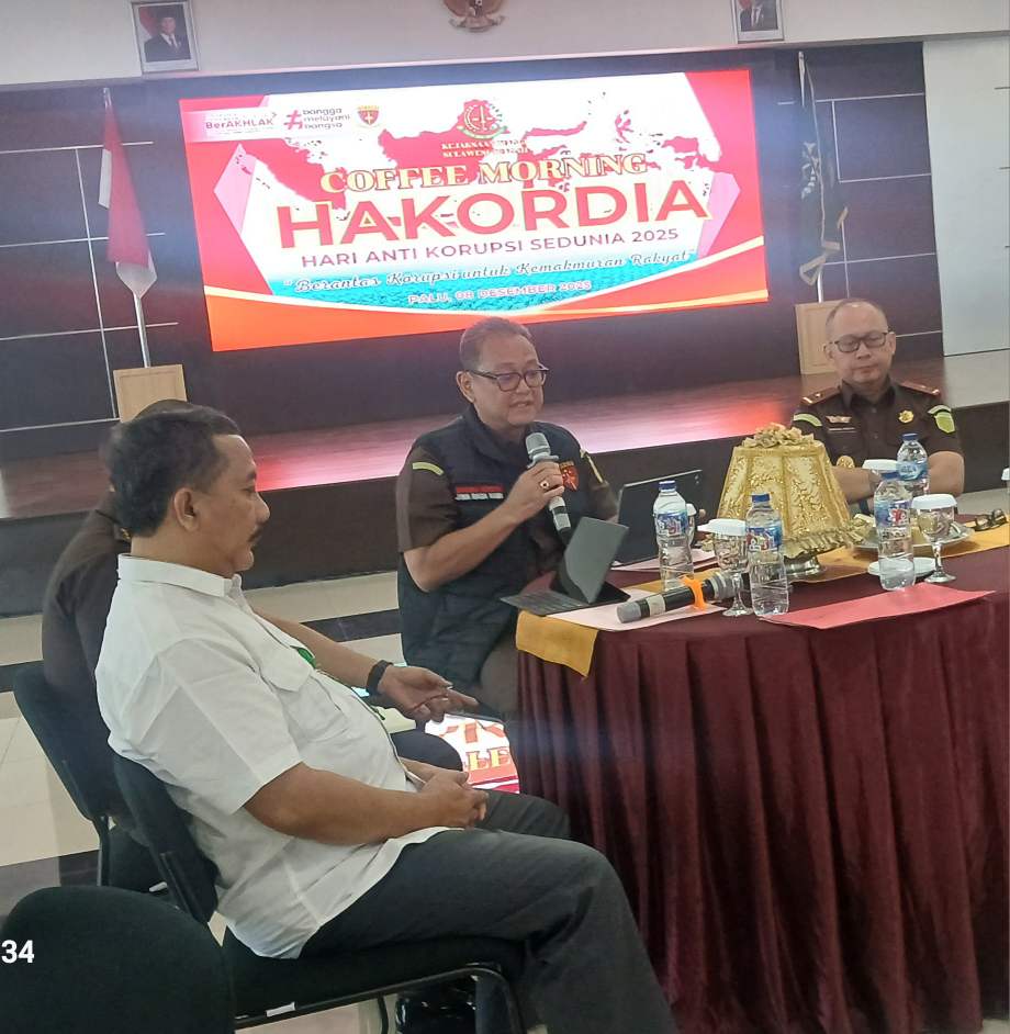 Kepala Seksi Penerangan Hukum Kejati Sulteng, Laode Abdul Sofian, SH, MH, menyampaikan bahwa forum ini menjadi ruang kolaborasi antara publik, media, dan aparat penegak hukum dalam memperkuat peran pencegahan serta pemberantasan tindak pidana korupsi. Momentum ini juga mengingatkan kembali makna HAKORDIA, yang diperingati setiap 9 Desember sebagai tindak lanjut penandatanganan United Nations Convention Against Corruption (UNCAC) pada 30 Oktober 2003 di Merida, Meksiko.