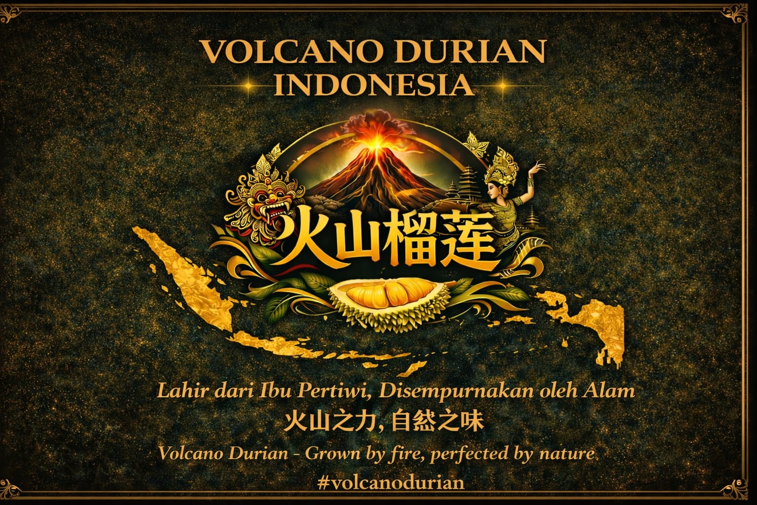Pemilihan nama “Volcano Durian” didasari atas kondisi geografis Indonesia yang berada di jalur cincin api (ring of fire). Lahan vulkanik yang kaya mineral diyakini menjadi faktor utama yang memberikan keunggulan komparatif berupa rasa durian yang lebih kompleks dan natural dibandingkan negara pesaing.